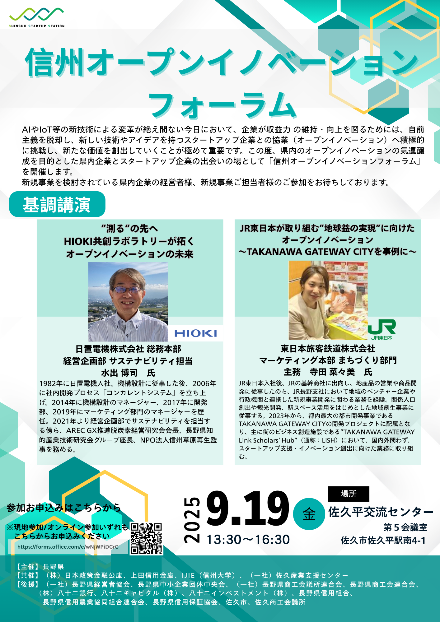 AIやIoT等の新技術による変革が絶え間ない今日において、企業が収益力の維持・向上を図るためには、自前主義を脱却し、新しい技術やアイデアを持つスタートアップ企業との協業(オープンイノベーション)へ積極的に挑戦し、新たな価 … 続きを読む 信州オープンイノベーションフォーラム