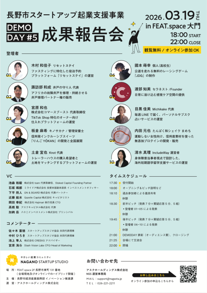 【3/19(木)開催】NAGANO STARTUP STUDIO DEMODAYのご案内