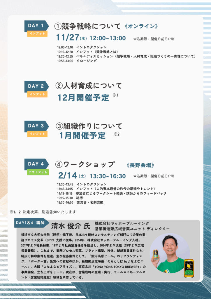 定員:リアル会場 30名 オンライン30名(※オンラインは第2部まで)