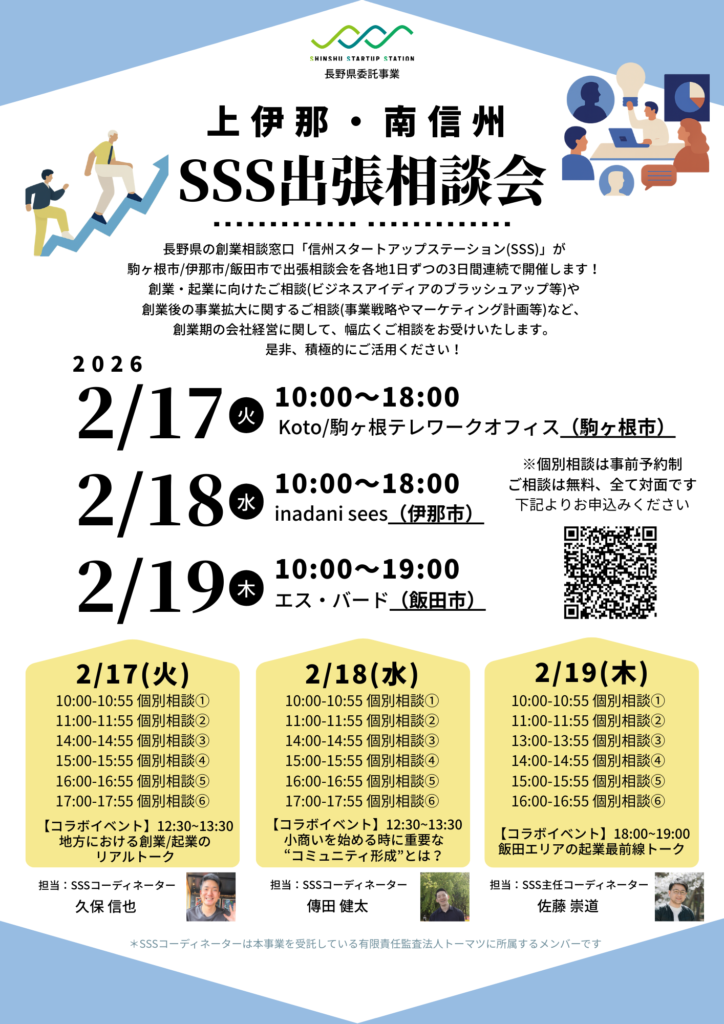 長野県の創業相談窓口「信州スタートアップステーション(SSS)」が