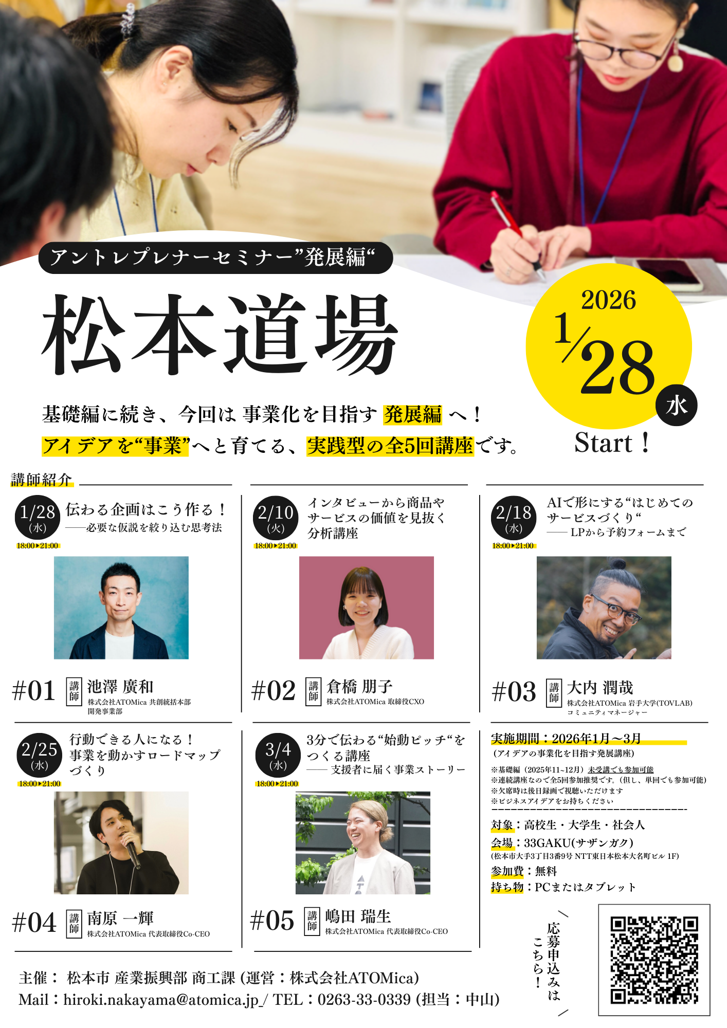 「松本道場」は、未経験から事業創出を目指す全5回のアントレプレナーセミナーです。