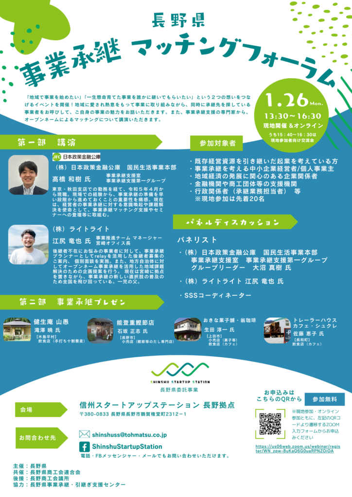 【後援】(一社)長野県経営者協会、長野県中小企業団体中央会、(一社)長野県商工会議所連合会、長野県商工会連合会、長野県信用組合、長野県信用農業協同組合連合会、長野県信用保証協会、松本商工会議所、(一社) 長野イノベーションベース