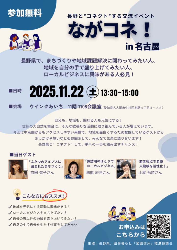 長野県で、まちづくりや地域課題解決に関わってみたい人、