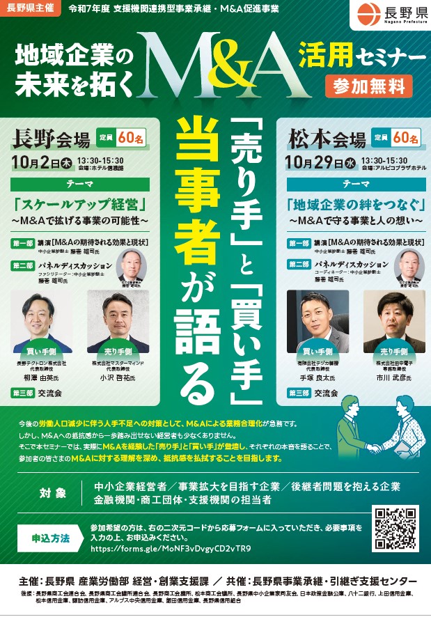 令和7年度 M&A活用セミナー~M&Aを経験した当事者が語る!~